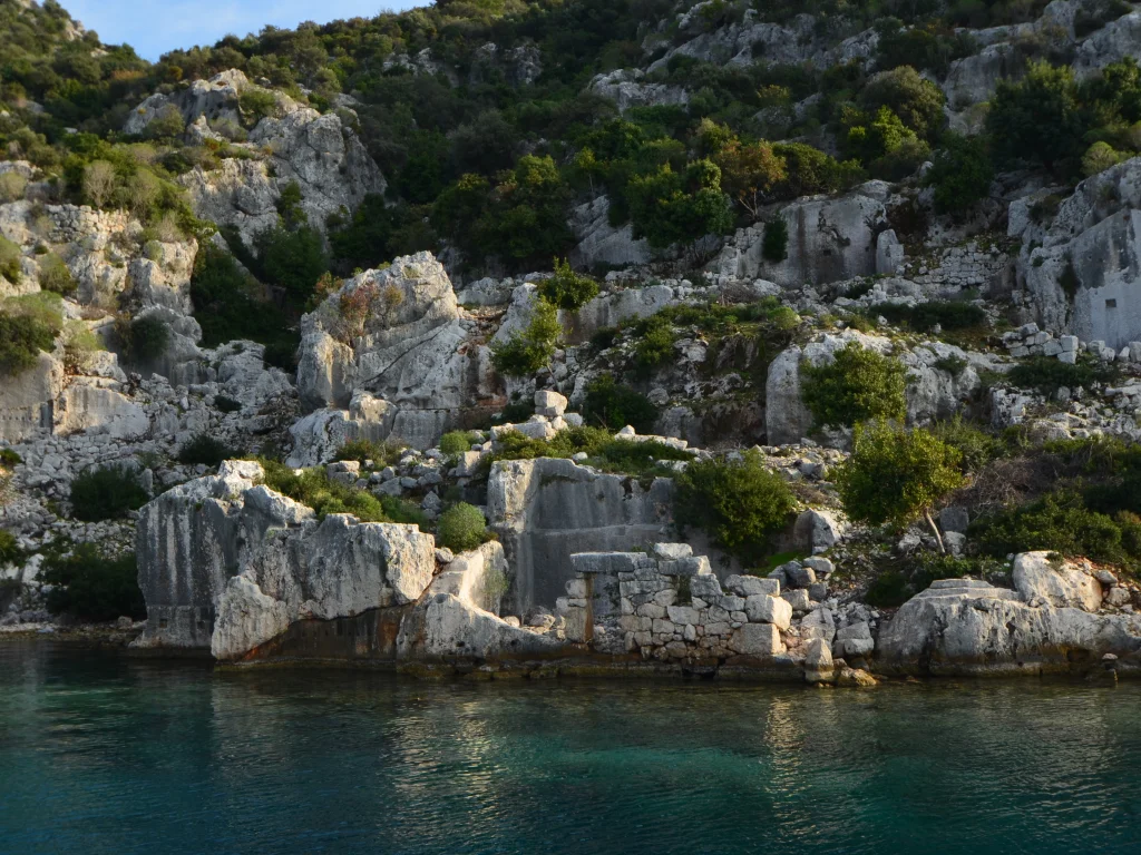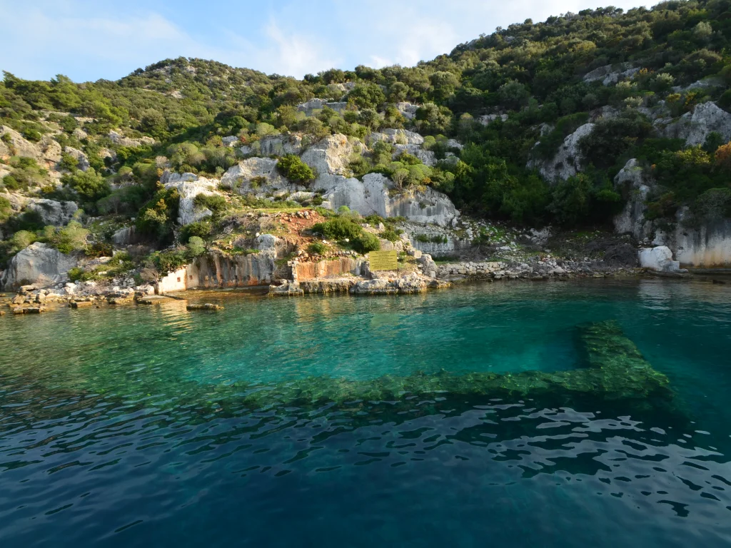 We then visit the charming town of Kaş, where families can explore the old streets, small shops, and historic sites like the Roman theatre. Next is a swim stop at Ufakdere or İnönü Bay before cruising to the fascinating Sunken City of Kekova, a unique Lycian site submerged after an ancient earthquake (viewing only — no swimming allowed). After that, we stop at Simena Village. Kids love the castle climb, the giant Lycian sarcophagus, and the homemade ice cream locals sell along the path.