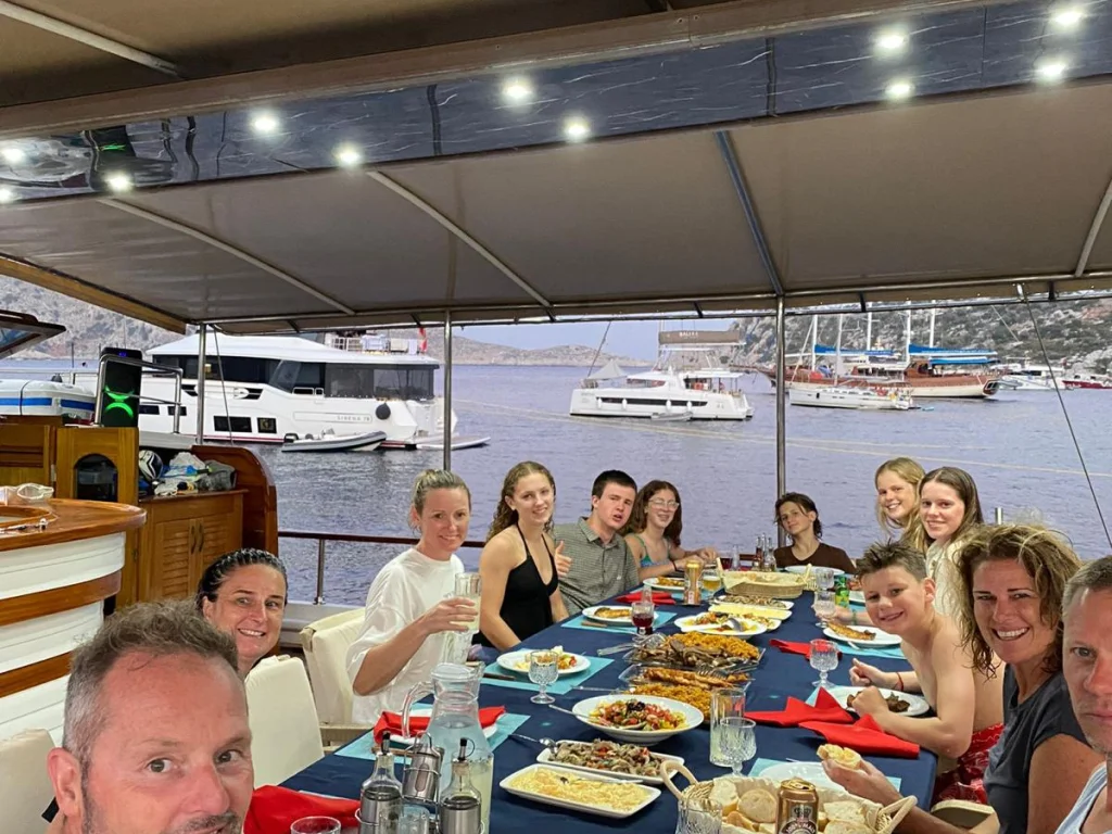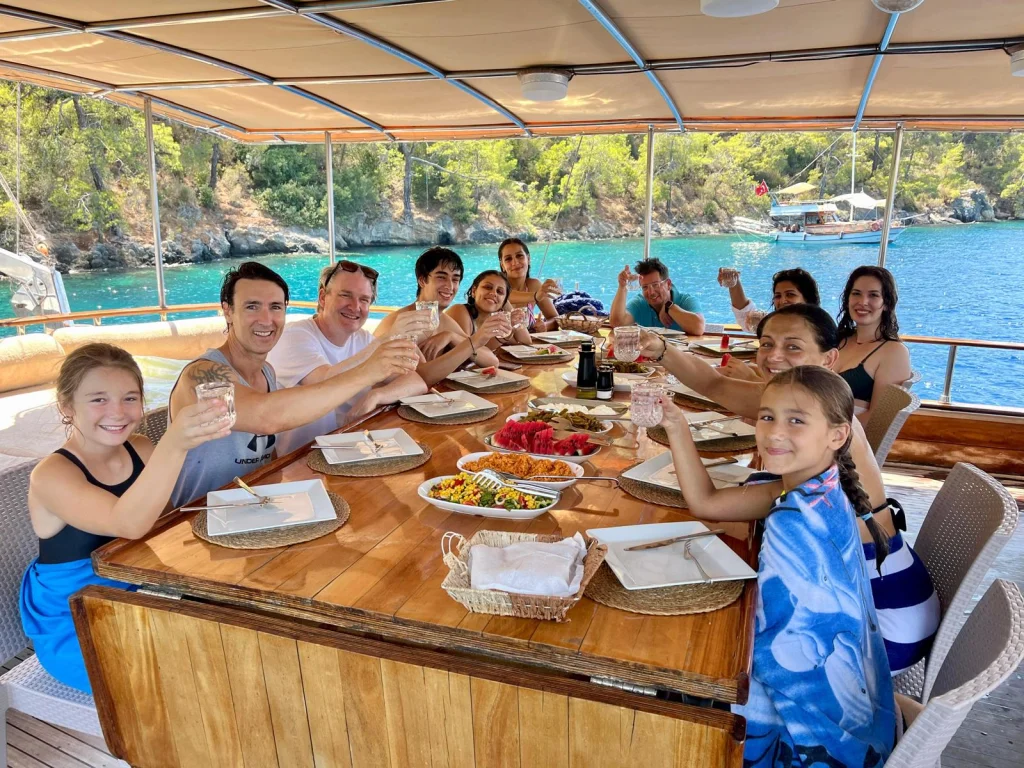 We begin the morning in Tarzan Bay, a fun stop known for its rope swings and calm waters — always a favourite among kids and adults. Then we sail to Samanlık Bay for lunch and the last family swim in the turquoise Mediterranean.