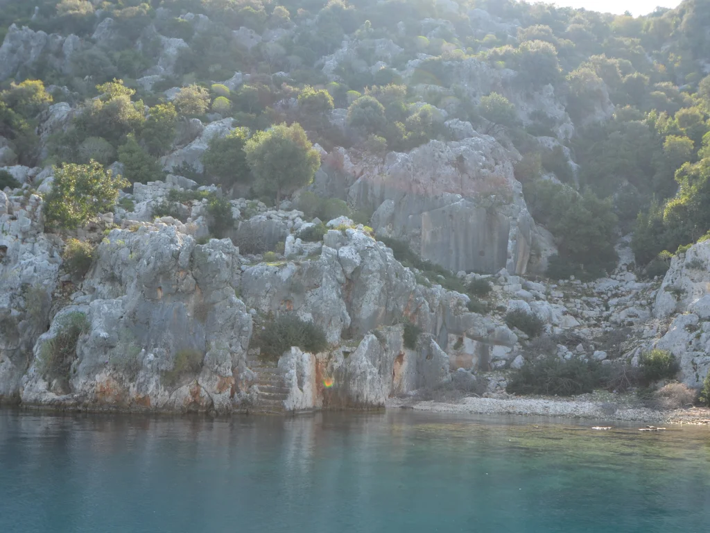 We then cruise to Aperlai, an ancient Lycian city partially submerged underwater. Lunch is served onboard, and you can snorkel over the ruins, exploring this unique underwater heritage.